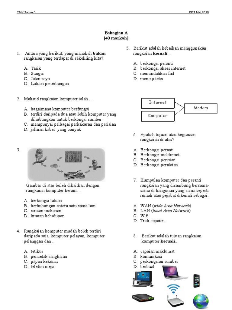 Wayar dan tanpa wayar 1.3 menyatakan kegunaan rangkaian 1.4 membuat ilustrasi model rangkaian 2.1 menamakan peranti rangkaian tmk tahun 5. Memindahkan fail memudahkan pemindahan fail yang disimpan dari satu komputer ke komputer yang lain. Peranti ini boleh berbentuk terbenam pada papan induk atau boleh disambungkan ke hab berfungsi menyambungkan beberapa komputer dan peranti dalam satu rangkaian kawasan setempat (lan). Pada tahun 1970an, perniagaan telah mula menggunakan mini komputer, yang biasanya diletakkan jauh dari komputer pusat, pemprosesannya masih dilakukan tidak lagi berpusat. Peranti rangkaian komputer tahun 5.