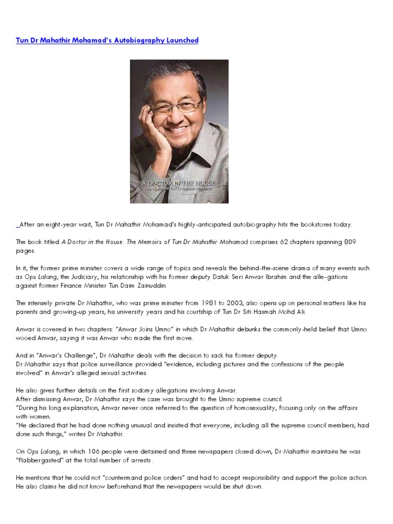 It is not difficult to imagine the situation in the house on the day dr mahathir was born. The memoirs of tun dr. Newa doctor in the house the memoir of tun dr mahathir mohamad. Malaysia s mahathir defends legacy in memoir the san diego union tribune. Topics biography, history collection opensource language english. The moment it was launched at mph mid valley, i grabbed the book with his. Newa doctor in the house the memoir of tun dr mahathir mohamad. I damn like this cover picture of dr m, he look.free delivery available, feel free to call. International news the japan news. *free* shipping on qualifying offers. Mahathir's magnum opus, a doctor in the house, purports to do the same for its author. Tun dr mahathir mohammad publisher: A doctor in the house: