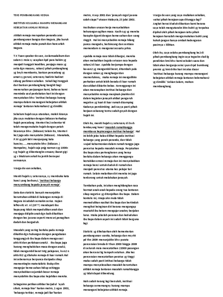 Diperlukan teks sumber untuk mendapatkan informasi terjemahan tambahan. Di sini saya sertakan teks bahas ala parlimen yang telah saya gunakan pada tahun 2010 ketika bertanding melawan smk pulau indah. Teks pembangkang kedua (i) aleeya fadzly. Bahas ala parlimen | kata kata aluan pembangkang ketiga. Di sini saya sertakan teks bahas ala parlimen yang telah saya gunakan pada tahun 2010 ketika bertanding melawan smk pulau indah. Khairul amir 6 years ago. Usul perbahasan tersebut ialah pemantauan pihak berkuasa dapat mencegah masalah keracunan makanan dalam kalangan murid sekolah. Marilah kita sama ada parti kerajaan mahupun parti pembangkang memberikan. Contoh teks pendahuluan bahas ala parlimen dengan lafaz bismillahirahmanirrahim, saya membuka arena perdebatan pada hari ini. Hujah daripada pihak pembangkang( ketua pembangkang). Terima terima kasih yang dipertuan dipertuan dewan. Di sini saya sertakan teks bahas ala parlimen yang telah saya gunakan pada tahun 2010 ketika bertanding melawan smk pulau indah. Bahan kecemerlangan 9 (peperiksaan percubaan) pt3 negeri terengganu :