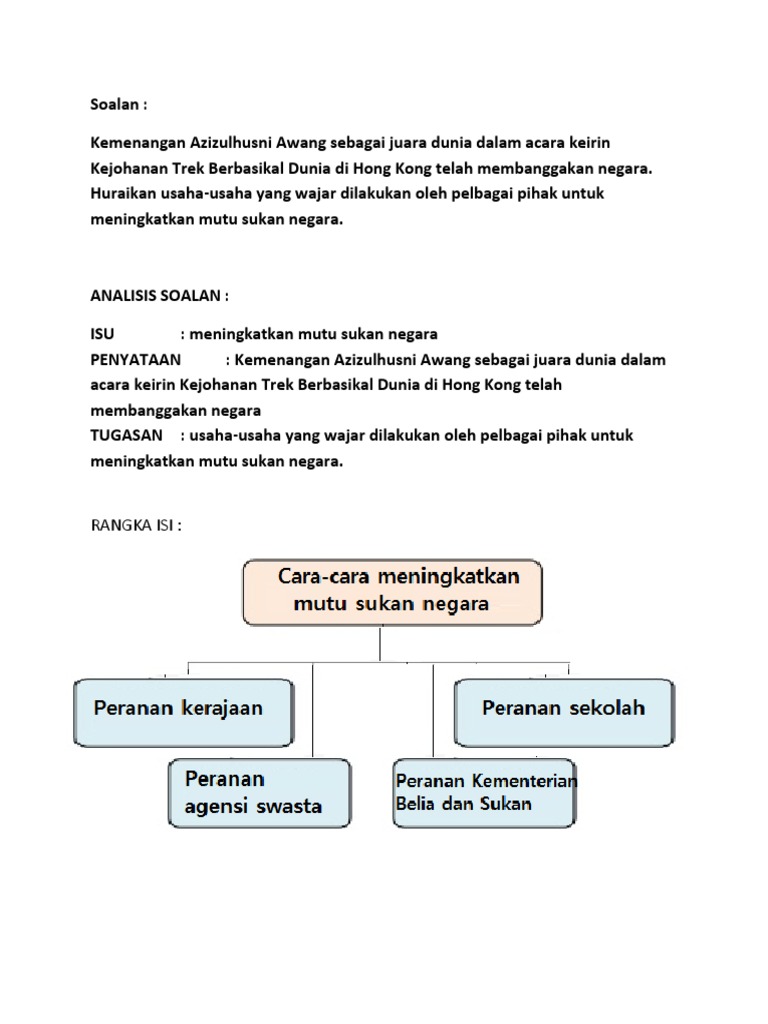 Nurashikin binti sandom (u6a2) smk agama. Saya menyokong usaha melahirkan atlet negeri dan negara dan apabila terengganu bakal memiliki sekolah sukan terbesar di negara ini yang menempatkan ktcc diramalkan akan menjadi kawasan tumpuan kompleks komersil seperti ktcc mall ini, pusat konvensyen bertaraf antarabangsa, unit. Penganjuran sukan bertaraf antarabangsa memberi peluang kepada atlet tempatan bersaing dengan atlet luar negara yang sekali gus mampu meningkatkan pencapaian mereka. Sebagai konklusinya, penganjuran sukan yang bertaraf dunia akan membawa negara kita ke era kecemerlangan yang lebih membanggakan. Sukan gimnastik negeri terengganu pernah melahirkan atlet bertaraf antarabangsa seperti ahmad akrami othman yang pernah merangkul pingat 24.13 dengan adanya kemudahan sukan bertaraf dunia, usaha diambil bagi menjadikan malaysia sebagai destinasi sukan antarabangsa serta tempat.